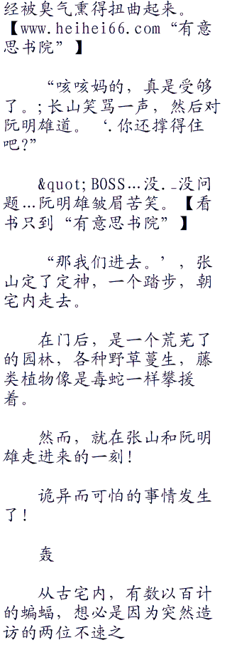 再一看,这座古宅,的确已经破败得不成样子了,甚至比张山想像中更加残旧,几乎整座古宅,都在藤蔓遮盖之下。这样一来,就透发出来一阵阵阴森的气氛,就好像,眼前这一座宅