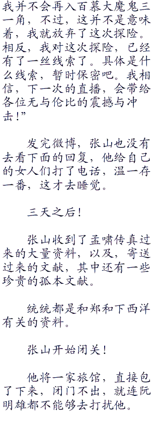 量巨型蝙蝠,非常可怕,如果不是我精通医理,阮明雄很可能,便已经步了那些精神失常之人的后尘了。”