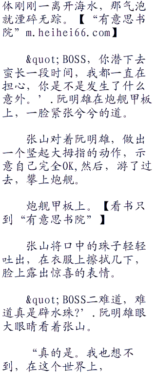 赫然之间,一股莫名的力量,将四面八方的海水挤开,形成一个透一明一状气泡,将张山包裹在中间。