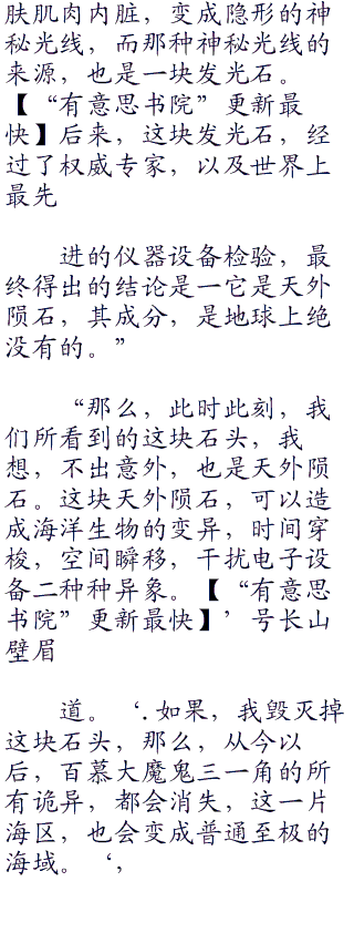 “呼~”张山深呼吸一下,然后对着镜头道。“各位观众,如果我没有猜错,那么,造成百慕大魔鬼三一角,种种诡异现象的始作俑者,就是这块石头了。大家还记得死亡谷的经历么?