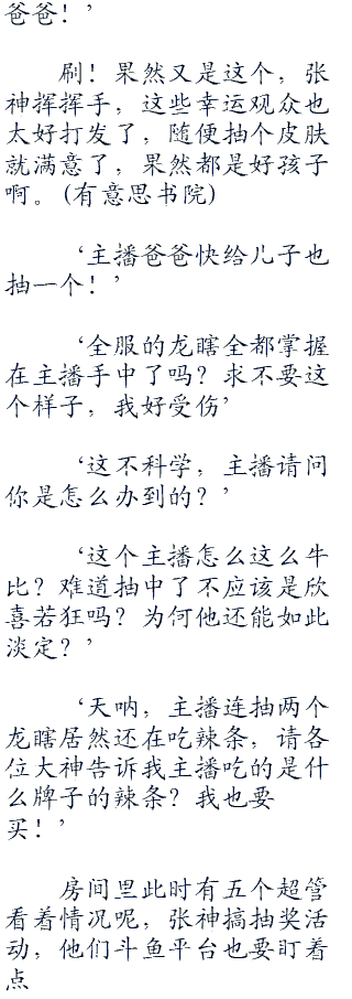 张神在超管小马的提醒下,立即通知再抽两名幸运观众,他根本就没有想到会有这么多的人进入到他的直播间来。