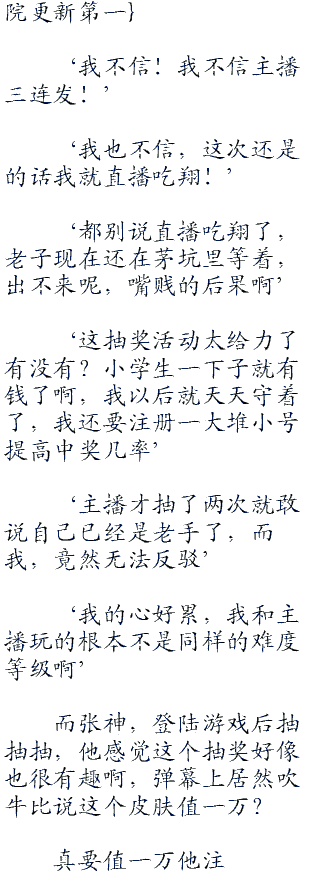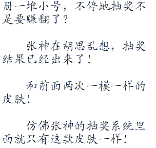 “真不知道大家是怎么想的,居然全都要这个皮肤,你看主播随便抽一下肯定又是它。”