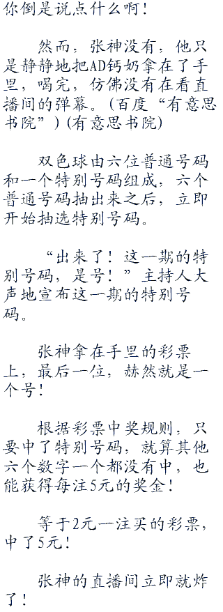 所以就造成了非常滑稽的一幕,居然会有五百万人在张神直播间收看双色球开奖