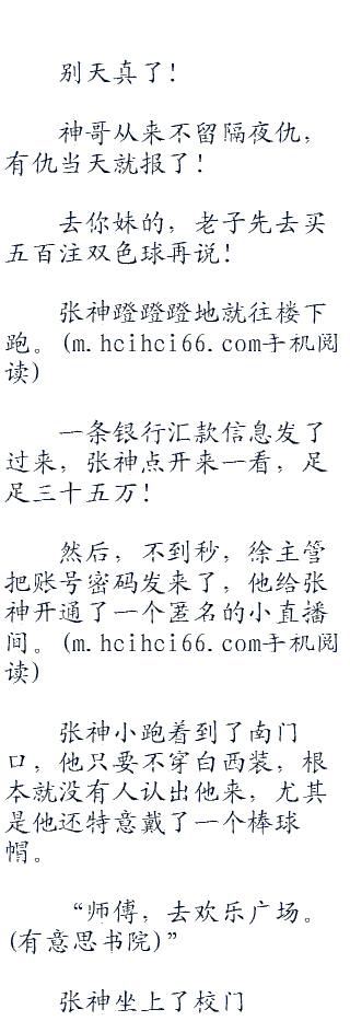 徐主管听着手机另一头张神一言不发,叹息一声,惭愧的说道:“张神,你这个月的签约费还有那些礼物我都会给你争取下来的,到时候发到你的卡上”
