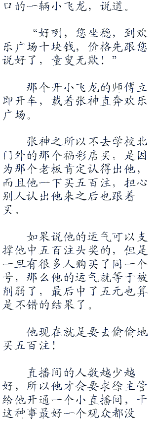 “喂?是张神吗?出事情了!我长话短说,你因为直播买彩票影响了福彩的正常运营,今天上午,福彩的一个领导通过关系给我们平台施压了!”