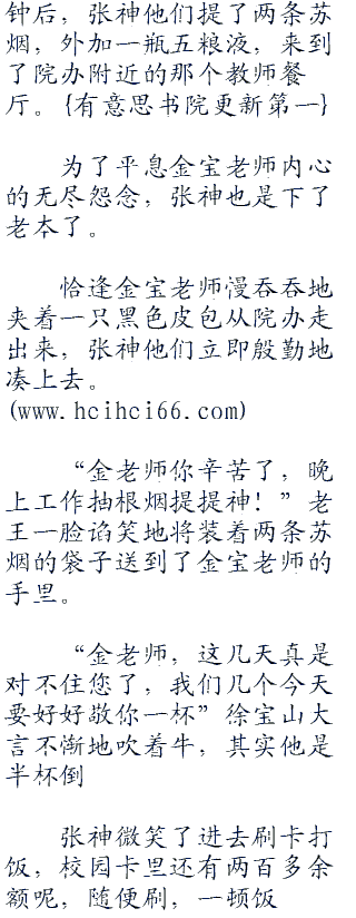 下楼梯的时候,张神想到,他们的辅导员金宝老师好像这两天被他们坑了两回了,是不是要笼络一下?安抚一下金宝老师已经碎裂的心灵?