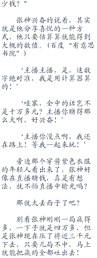 ‘主播主播,是,是不是说,如果中奖了,你压的块钱就变成了四万多了?’