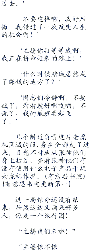“几位先森,旁边那些机子也是可以玩的”那个负责上分的服.务生看看几位赌客你争我夺的样子,立即提醒道。