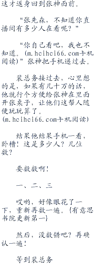 裴总务带人将张神他们劝离座位,这才重新接通电源。