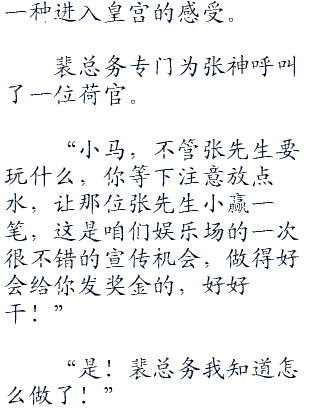 张神在握手的时候,和气地询问了一下这位裴总务,如果没有赌场方面的认可,里面别说直播了,拍照都是不行的。