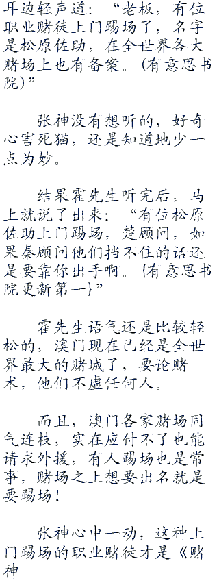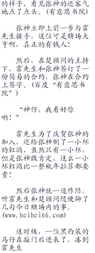 楚顾问叫他是为了和张神签订合同,而且葡京娱乐场的大boss霍先生都出面了!