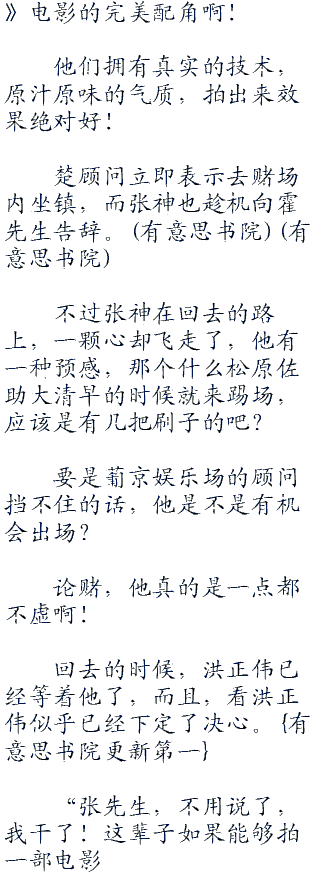 “张先森真是年轻有为啊!欢迎担任我们葡京娱乐场的顾问!”