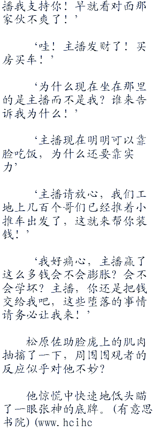 松原佐助眼皮一跳,他又看了一眼自己的底牌,一咬牙,跟身边的助手说了一句,然后快速地签了一张两亿元的支票,“我跟!”