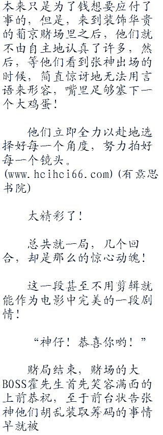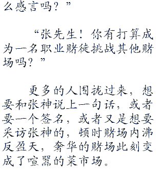 甚至他可以放肆地坐着大叫:你们葡京赌场没有人了吗?