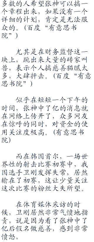 如果张神想要继续自己支配这一笔高额的奖金的话,他就会受到公众的质疑: