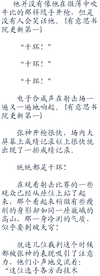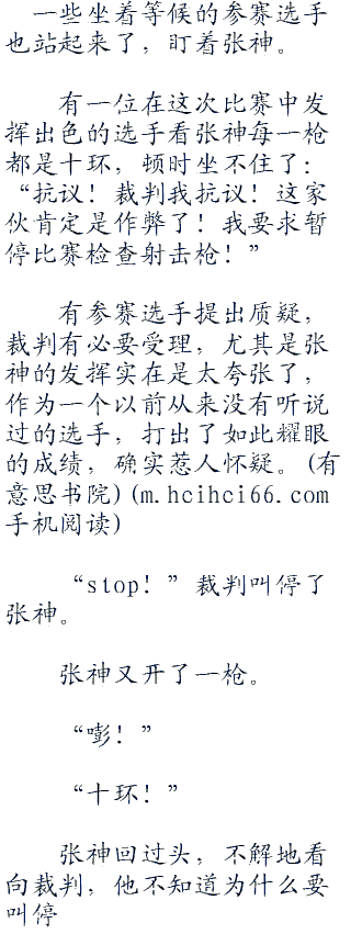 张神试射之后,向裁判点点头,表示可以正式开始了。