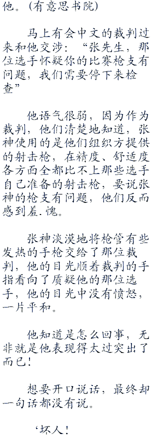 张神在射击场上,认真地瞄准靶子,开枪,他的动作不够专业,但是他足够认真。