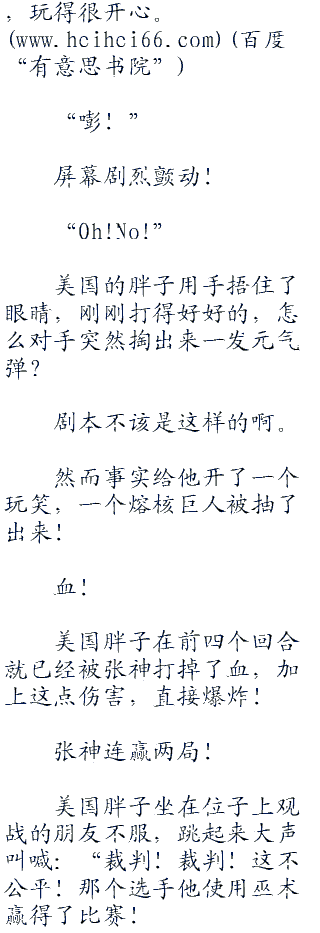 比赛开始,会场的大屏幕上放出了张神和那个美国胖子的对战。