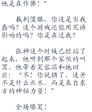 因为不能说话,张神只能碎碎念:“巴啦啦小魔仙,巴拉拉能量,呼啦啦,魔棱镜
