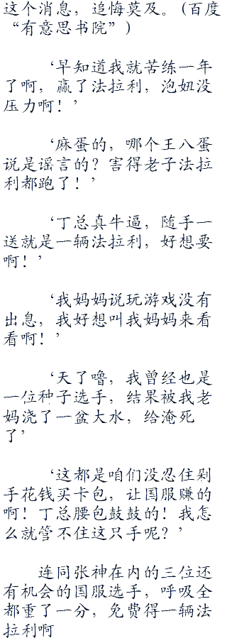 ‘鱼大仙哭了,他女朋友昨天说要他把黄金炉石赢回家做金手镯的,现在两包干脆面已经准备好了,就等他回家就能跪了,这可是鱼嫂的保留节目,听说要是把干脆面跪碎了就死定了’