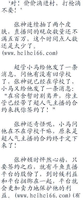 等把表妹送回学校,张神暗道自己机智,幸亏是晚上送来的,白天送来的话被人看见了指不定就要说自己表妹被大款包养了什么的
