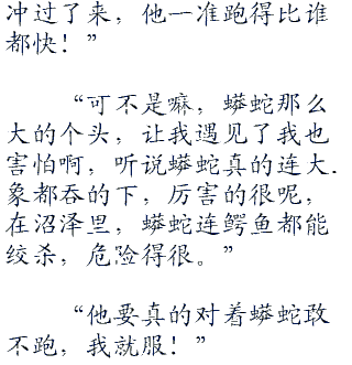 结果他们跑到前面,也没有看见有什么蟒蛇啊。