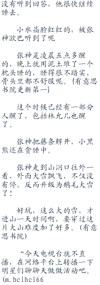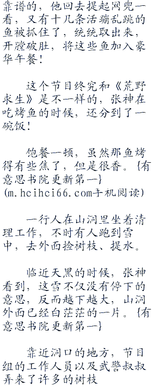 她们现在还很兴奋了,来中国之前就从来没有想过,自己会到大山里来,然后在山洞里烤鱼,看着外面白雪纷飞,总有一种好浪漫的气息。