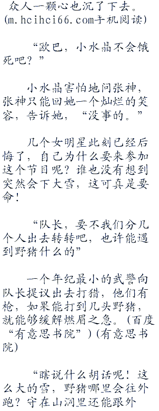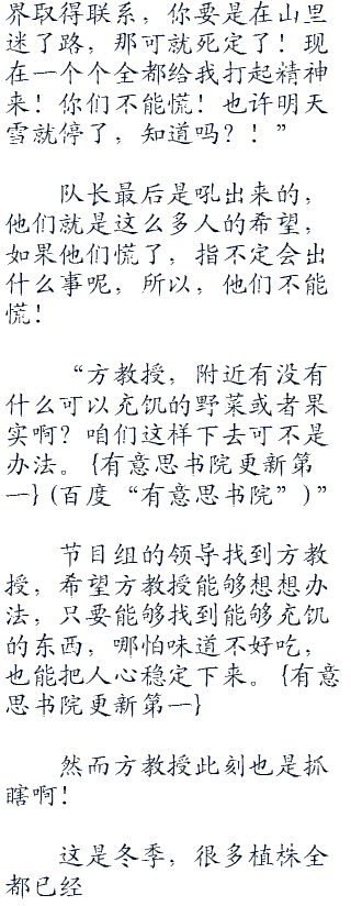 食物紧缺了,张神只好想想办法,几个男明星和两个武警也陪同他一起去。