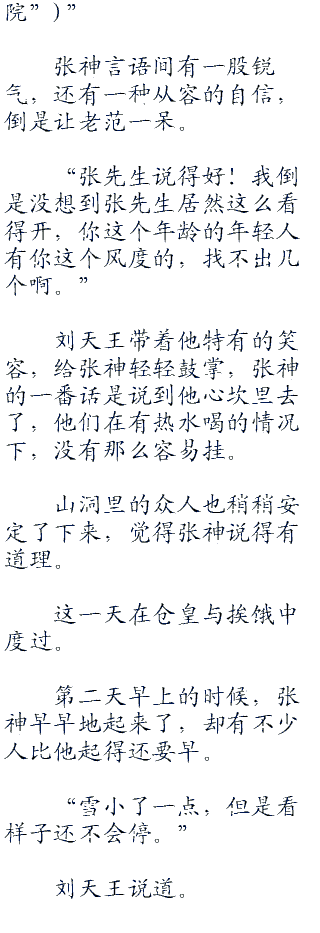 一夜无话,又一次天亮了,但是,大雪还是没有停!