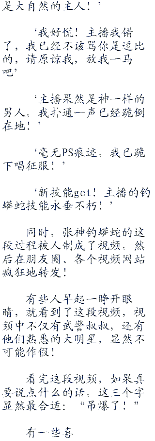 “哎哟,我收回我前几天说的话,我说他真的看见蟒蛇肯定会怂,没想到他却这么猛,我是真的服了他了!”