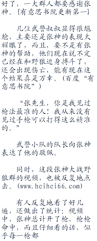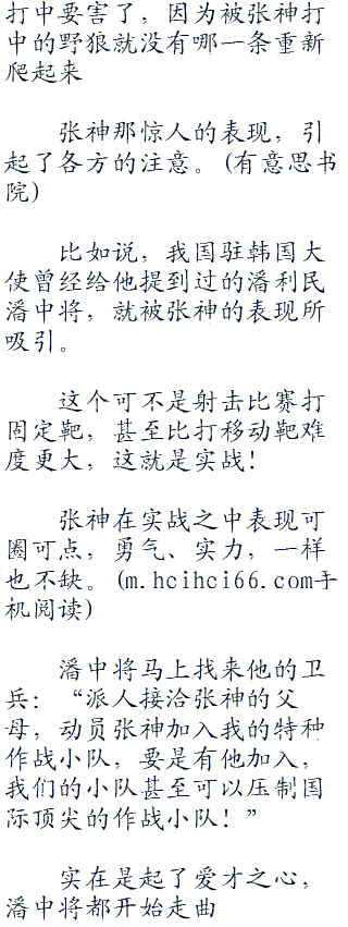 武警小队的队长还多看了张神一眼,实在是张神的枪法太溜了,比教他们射击的教官还要牛逼十倍!