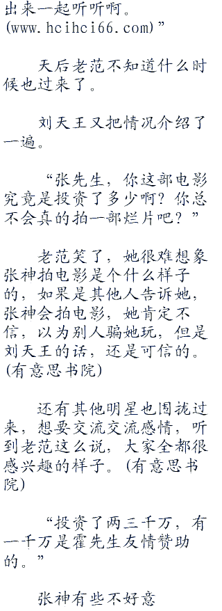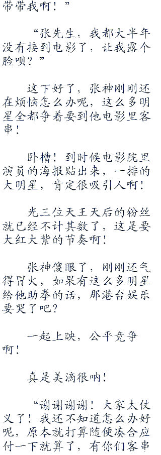 “哦?有这样的事?张先生,算我一个!先说好啊,我就露个面,叫我拍电影真是有些难为我了”
