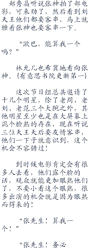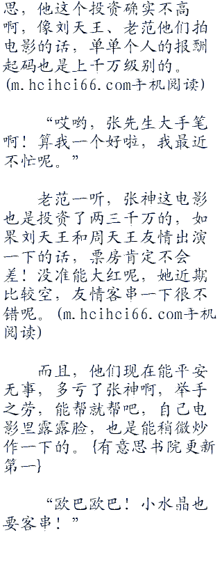 “张先生你不要气馁,我说了给你客串一下,就不会因为这点小困难就退缩了,有我助拳,没准能把成本收回来。”