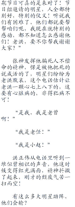 得到了众明星的支持,张神马上给洪正伟反拨了回去。