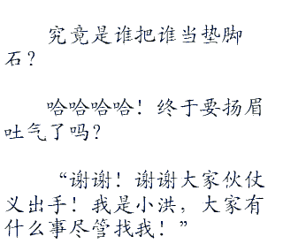 没想到张先生报喜的时候还要戏弄一下人家,这个小洪什么的可真惨,而且,看张神这笑容,似乎还不准备和盘托出呢。