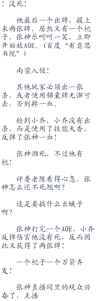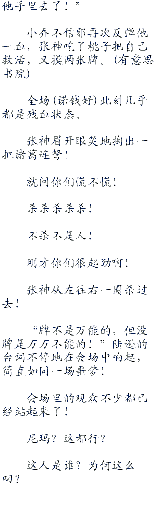 评委老陈已经又在发表他的观点了,一如既往地不看好张神:“你们看看,他居然选了一个陆逊,要是张角等下给他来个雷击,他马上就要输!他还不如选郭嘉或者吕蒙呢,他现在不管怎么打都很容易暴露自己内奸的身份啊 。”