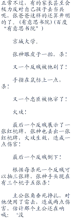 “你们是张神的家长吧?我们是来开展征兵工作的,据我们考察,张神同志有着出色的军事素养,我们首长希望将他征召入伍,这是待遇条款,你们看看。首发”
