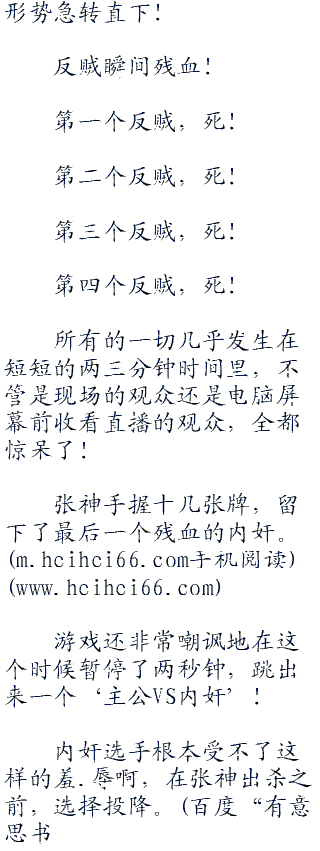 那些反贼差点笑出声,哈哈,死得好,张神居然把忠臣打死了,笑死人了,这下稳了。首发
