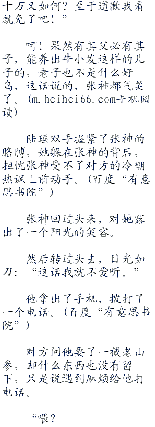 张神也听着呢,他拿过电话:“苏秘书,你的面子我是给的,只要他们把我的汽车给还回来弄好了,以后别来惹我,再赔个十万八万的意思一下,让我找回一点面子,这件事就算了。手机阅读更方便m..com”