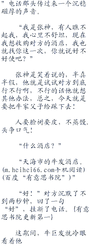牛小发心里微微有些着急,赶紧给他老爹打电话,让老爹给他出出主意,以免被他把自己老爹坑了。.com
