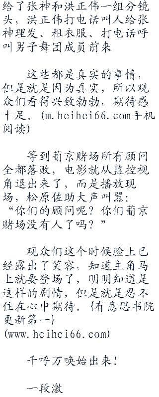 接下来拍摄到了职业赌徒松原佐助踢场子的剧情,这一段使用赌场监控的视角来拍摄的,天后范姐出现在了监控室中,扮演赌场经理的角色,然后真实地播放松原佐助大战葡京赌场各大顾问的剧情。