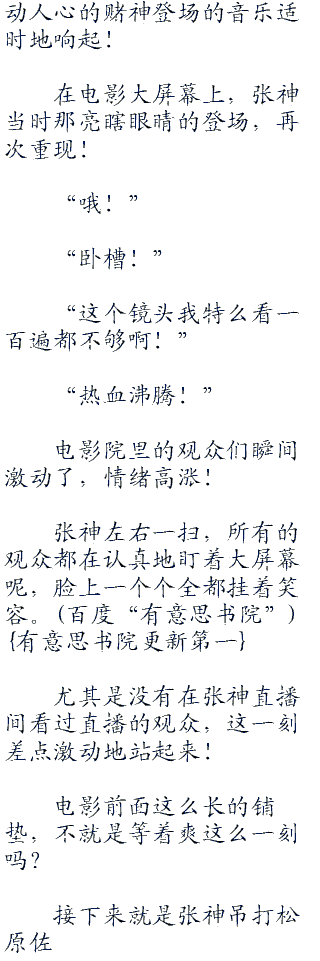 电影院里,张神认真的观看,这还是他第一次看完整版的。