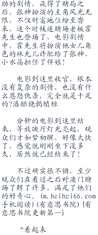 电影一开始,就随着一个人的脚步,走进奢华的葡京娱乐场,让观众们跟随这个视角将葡京娱乐场的高档体现了出来。