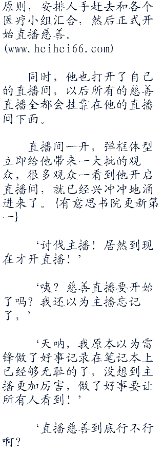 张神不会拖延,虽然他知道,他们现在才刚刚运转起来,能够帮助的人有限,但是他会尽力去努力,用真实的例子告诉大家,直播慈善是可行的,财务也是完全可以公开的,接受全社会的监督,让善款真正落实到实处。