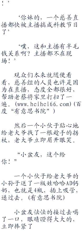 老蔡的孙子在乔普森给他做检查的时候,一直扶着老蔡呢,慈善组的工作人员从火车上提下来两袋米,一桶花生油。首发