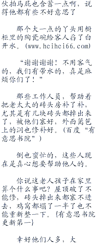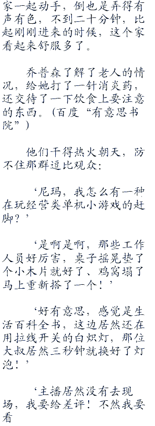 慈善小队的工作人员还在继续,和乔普森的医疗小队一起挨家挨户地上门拜访。首发