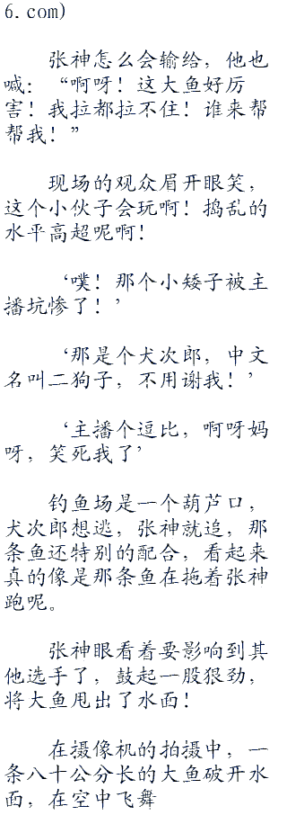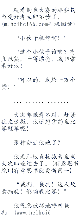 时时关注钓鱼大赛进展的媒体记者们,非常的兴奋,犬次郎在钓鱼大赛上大放厥词,这个时候只要有谁站出来,把他压下去,马上就是英雄啊。