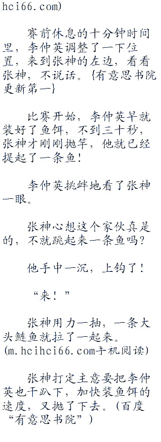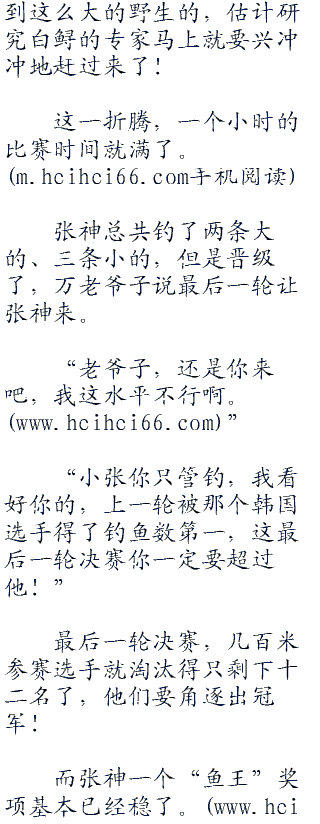 那个凶残地一寸一寸扯着鱼线的俄国人还能往这边看,他发现张神被鱼拖着往前,差点就栽到水里,轻蔑地一笑,继而继续发力,加速拉扯鱼线,任凭他钓到的大鱼疯狂地拍打水面,溅起无数水花。百度