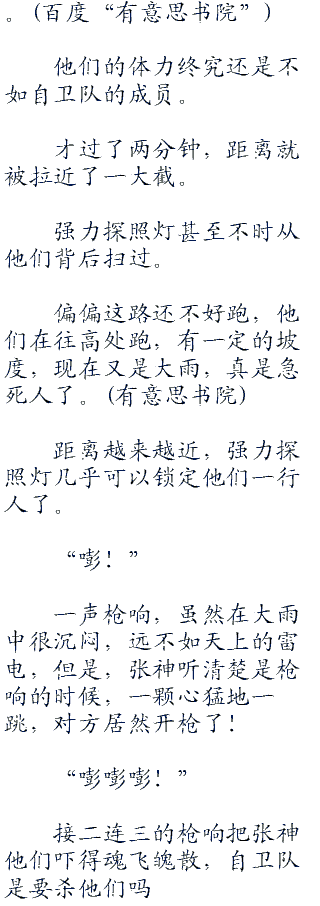 张神使劲地跑啊,心里有点慌,他刚刚一回头,好像看见那些自卫队的拿着枪呢,这要是把他给突突了,不是亏得慌吗?