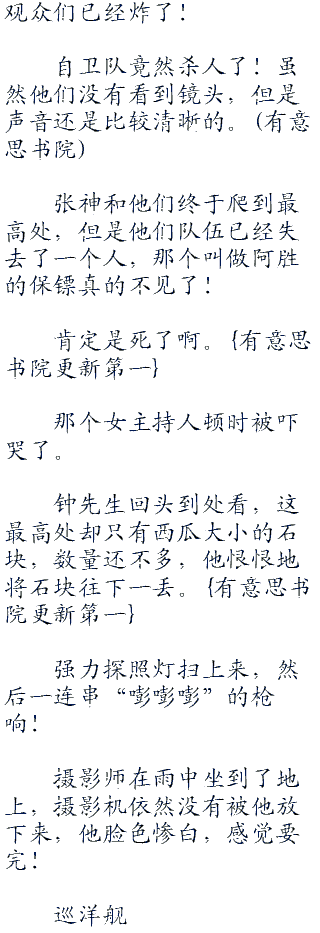 钟先生冒雨往高处跑,他心中想的是,这艘巡洋舰肯定不敢打钓鱼岛,炮轰钓鱼岛会让矛盾彻底爆发,所以这发炮弹的目的估计是吓唬他们!